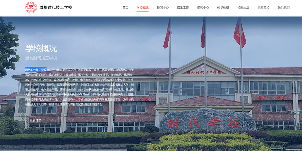 ![]() 濰坊時(shí)代技工學(xué)校是一所由政府批準成(chéng)立的中等職業院校,座落在風景美麗的鸢都(dōu)濰坊,位于寶通街西首的首陽山旅遊度假區( 濰坊市委黨校西鄰),這(zhè)裡(lǐ)風景優美、綠樹成(chéng)蔭、花草遍地。學(xué)校占地100餘畝,設立幼兒教育、護理、電子商務、計算機網絡應用等多個專業,學(xué)校擁有一支高學(xué)曆、高技能(néng)、雙師型的教師隊伍,90%以上的老師畢業于國(guó)家和省重點大學(xué),師資力量雄厚,教學(xué)質量嚴謹,管理制度健全,曾多次榮獲山東省教育廳濰坊市教體局、濰坊市人社局的獎章和榮譽稱号!2021年被評爲優秀辦學(xué)單位! 濰坊時(shí)代技工學(xué)校融夏季高考、職教高考等多種(zhǒng)育人功能(néng)于一身,以培養具有一定專業技能(néng)素質和較高學(xué)業素養的學(xué)生,爲高等院校輸送人才爲目的,在課程上注重文化課程與試驗技能(néng)課程相結合,按照六個維度:品格與社會(huì)、語言與文化、科技與思維、運動與健康、藝術與審美、專業理論和專業技能(néng);三個層級:國(guó)家必修課程、校本課程(特色必修、多元選修)進(jìn)行課程設置。 |
