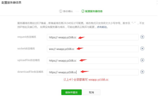 如圖所示,點擊“設置”-》“開(kāi)發(fā)設置”,設置服務器域名,域名全部填寫 wxapp.yz168.cc ![]() ![]()