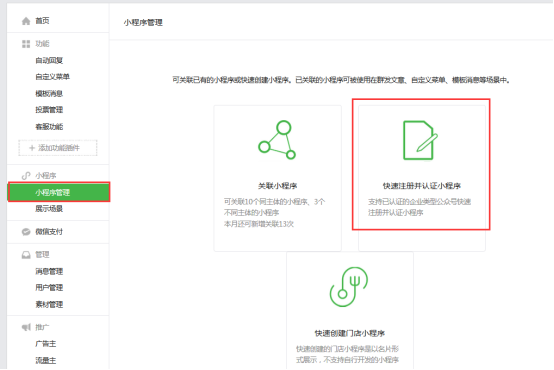 2.選擇“快速注冊并認證小程序” 3.注冊完成(chéng)後(hòu),即可填寫小程序的基本信息以及設置小程序的開(kāi)發(fā)者和體驗者