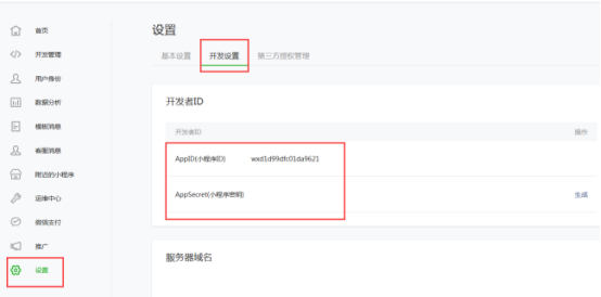 (1).登錄小程序——設置——開(kāi)發(fā)設置——獲取小程序APP信息